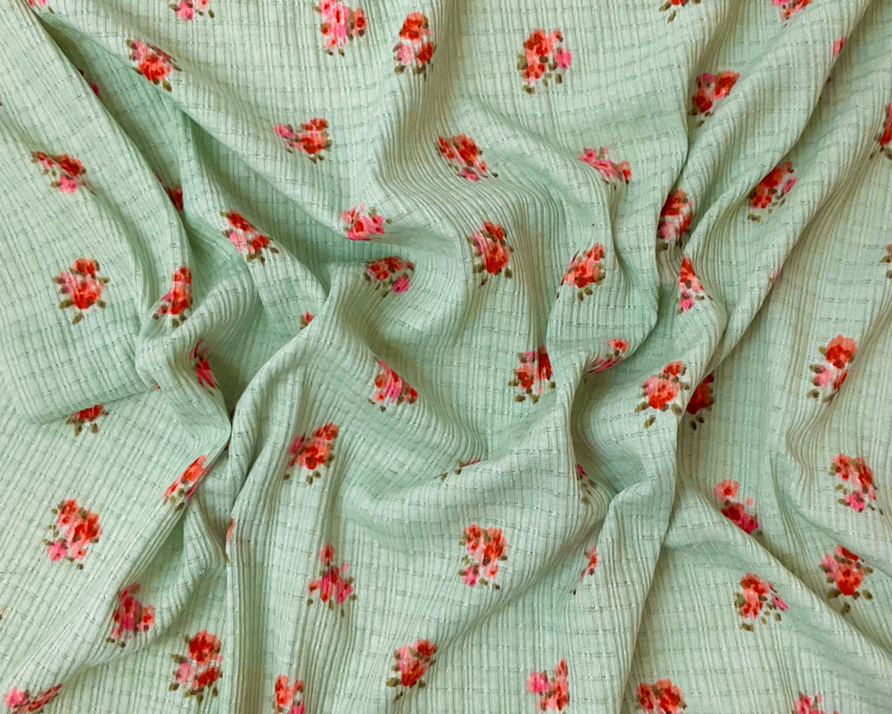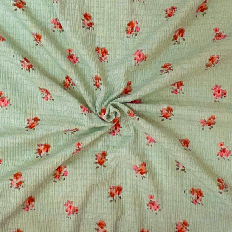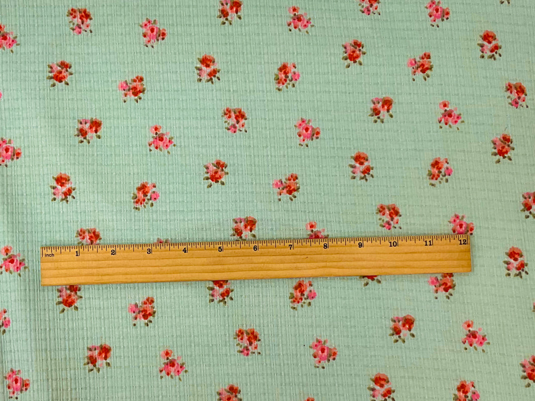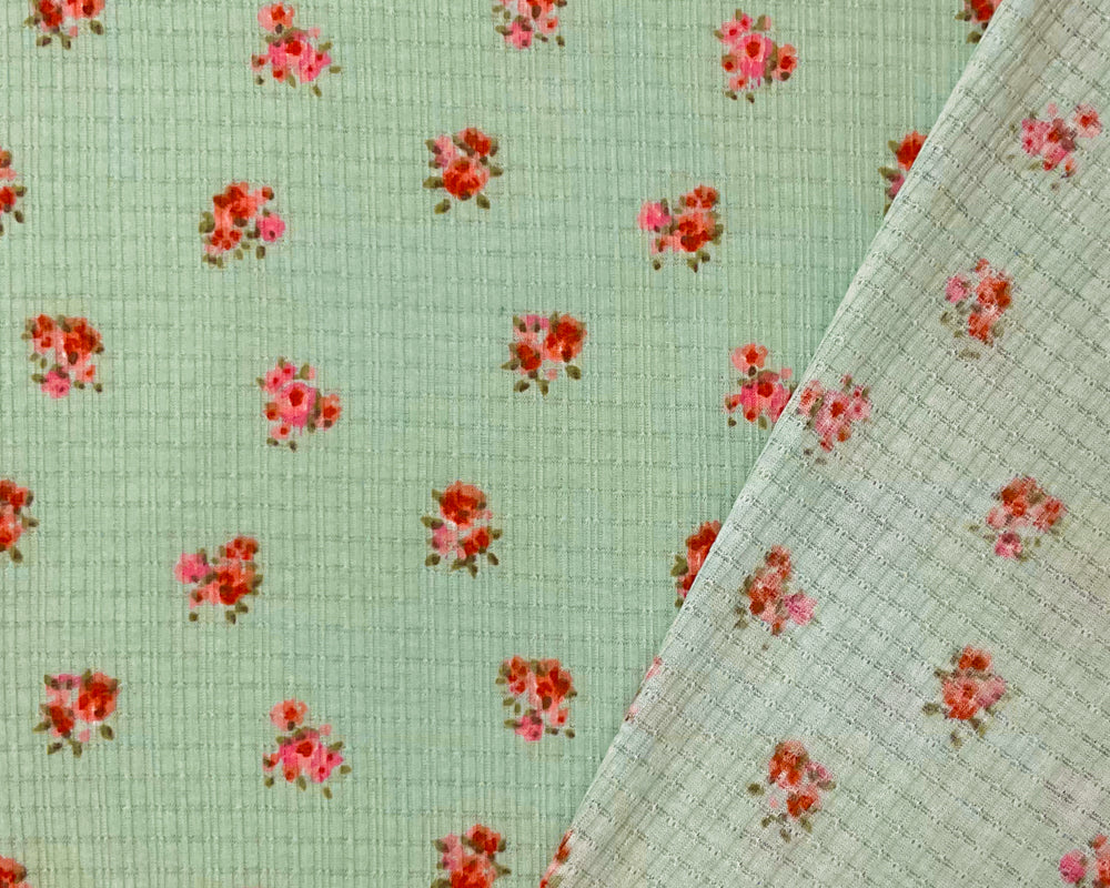 -Green-Pink-Red Poly Blend Stretch Floral Printed Irregular Rib Knit Fabric