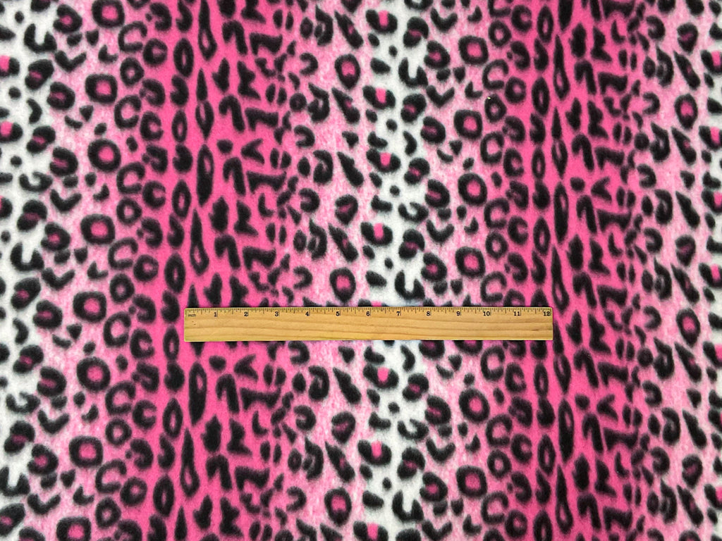 Pink-Black-White Polyester Leopard Printed Polar Fleece Knit Fabric