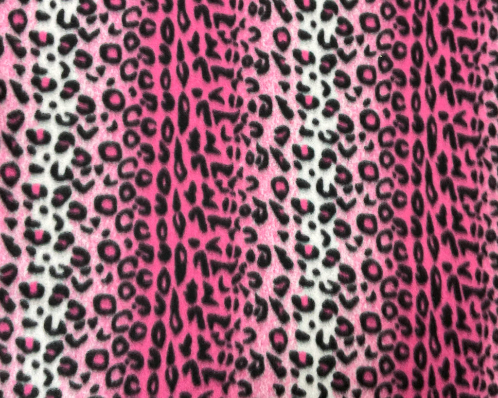 -325G/Y, Pink-Black-White Polyester Leopard Printed Polar Fleece Knit Fabric