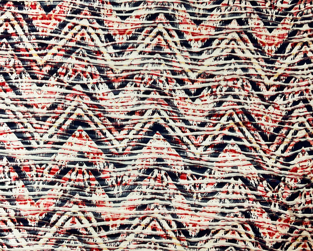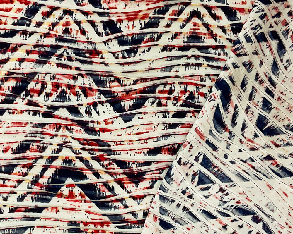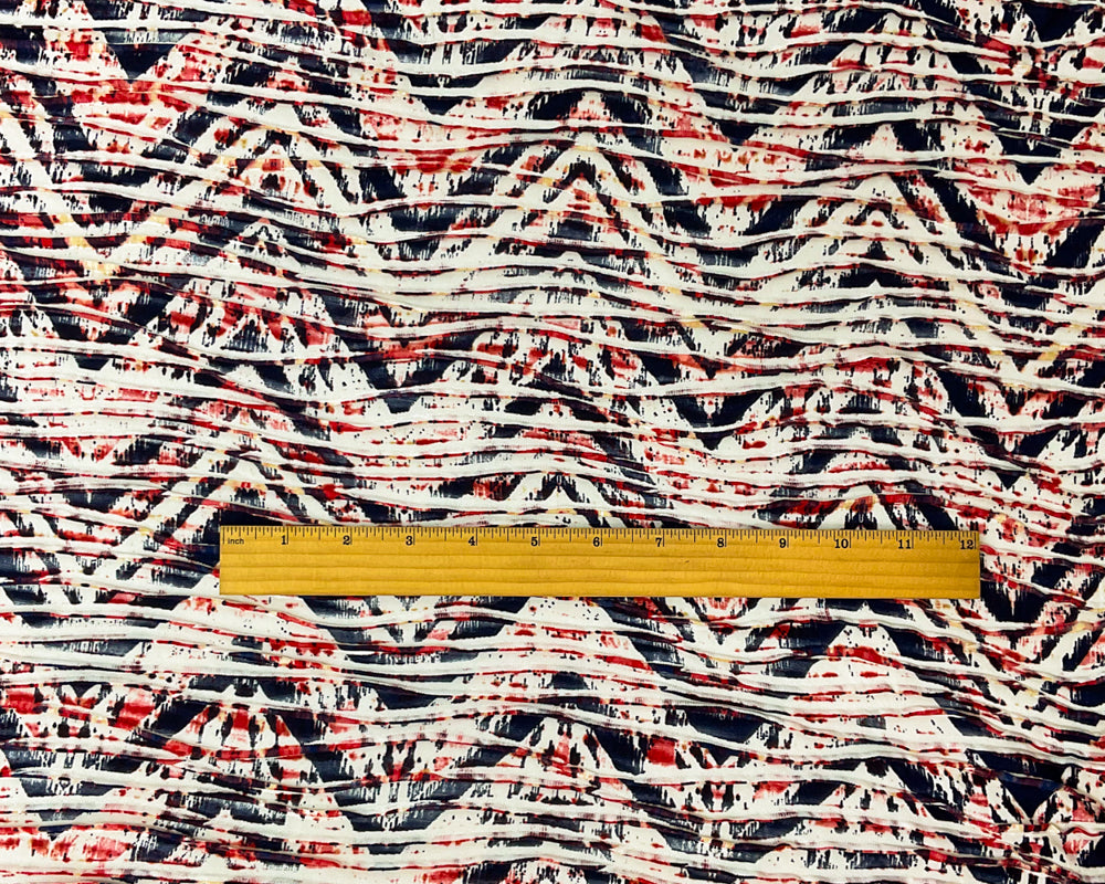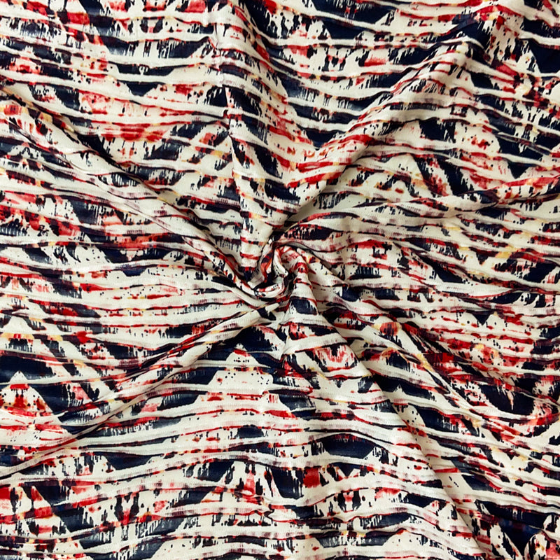 Red-Multi Poly Chevron Printed Knife Pleat Knit Fabric