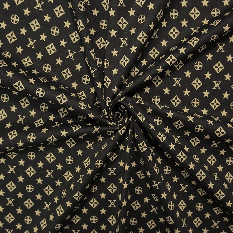 Beige-Black Cotton Stretch Geometric Print Poplin Woven Fabric
