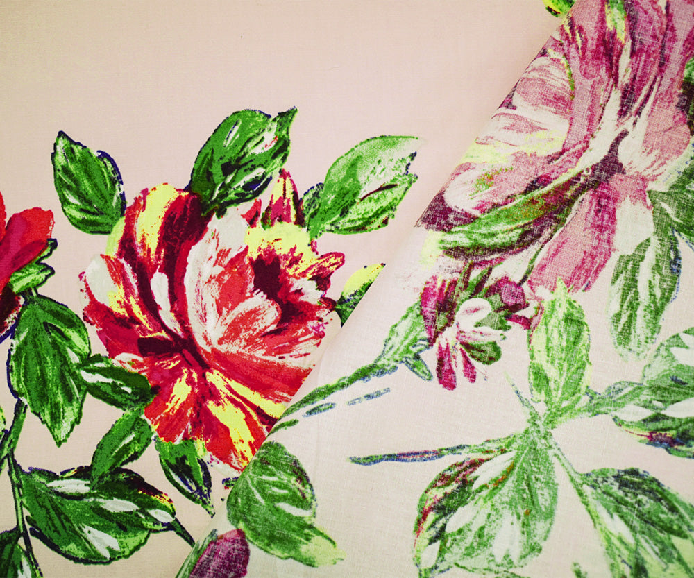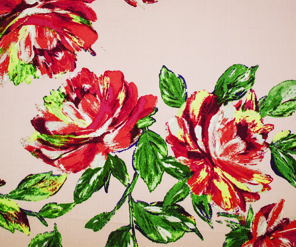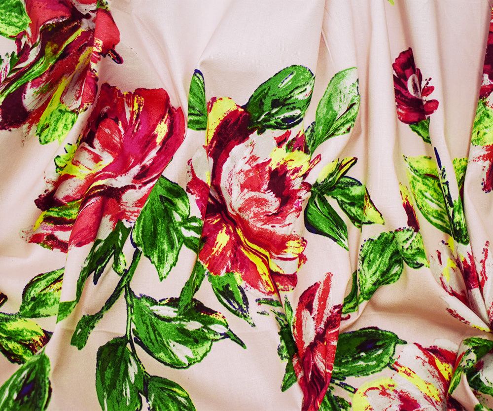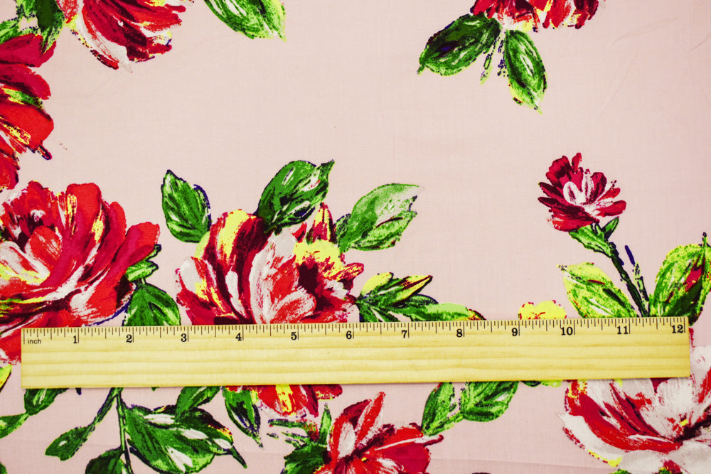 Light Pink-Multi Cotton Floral Print Stretch Spandex Poplin Woven Fabric