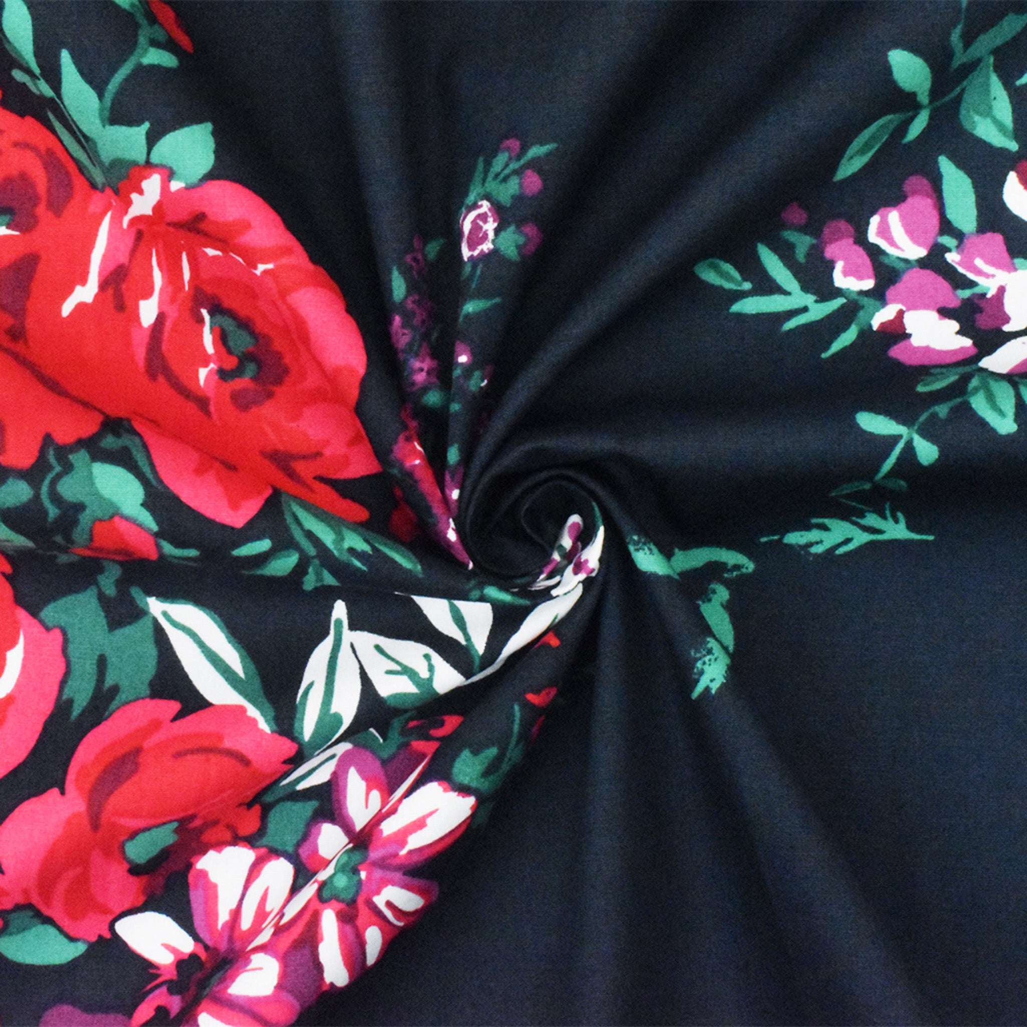 Navy-Blue-Multi Floral Printed Cotton Poplin Woven Fabric