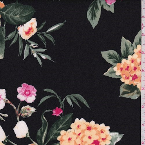 Black/Apricot/Pink Floral Double Brushed Jersey Knit Fabric