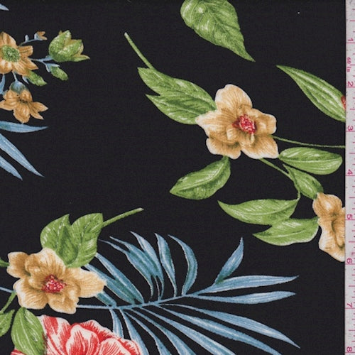 Black Multi Tropical Floral Double Brushed Jersey Knit Fabric