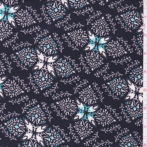 Black/White Vine Medallion Crepe Fabric