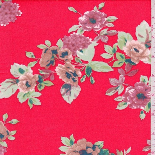 Bright Red Floral Double Brushed Jersey Knit Fabric