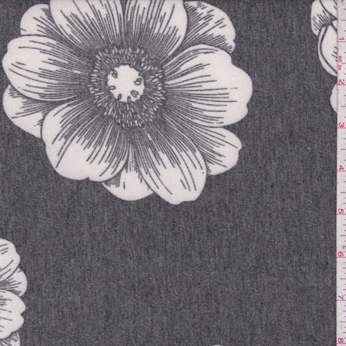 Heather Slate/White Floral Bloom Brushed French Terry Knit Fabric