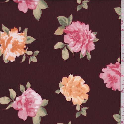 Maroon Floral Bloom Double Brushed Jersey Knit Fabric