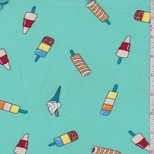 Mint Blue Ice Cream Treat Double Brushed Jersey Knit Fabric