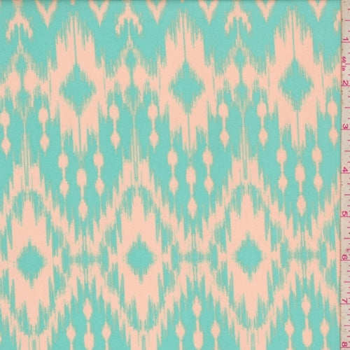 Pale Tan/Mint Diamond Ikat Challis Fabric