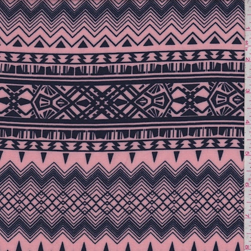 Peach Pink/Navy Geo Stripe Rayon Challis Fabric