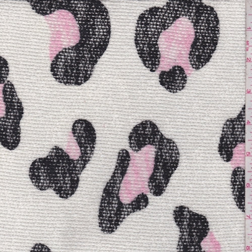 White/Black/Pink Cheetah Print Sweater Knit Fabric