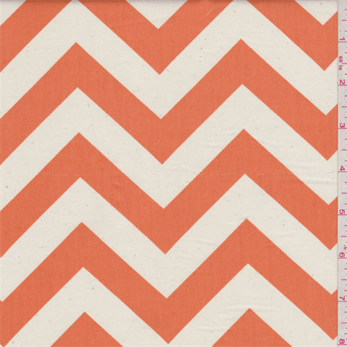 "Zig Zag" print by Premier Prints. An orange and ivory horizontal chevron print. This lightweight 7 oz cotton poplin has a smooth surface and crisp hand.