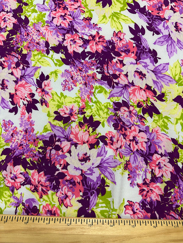 1 1/2 YD PC-Purple Multi Floral Print ITY Jersey Knit Fabric