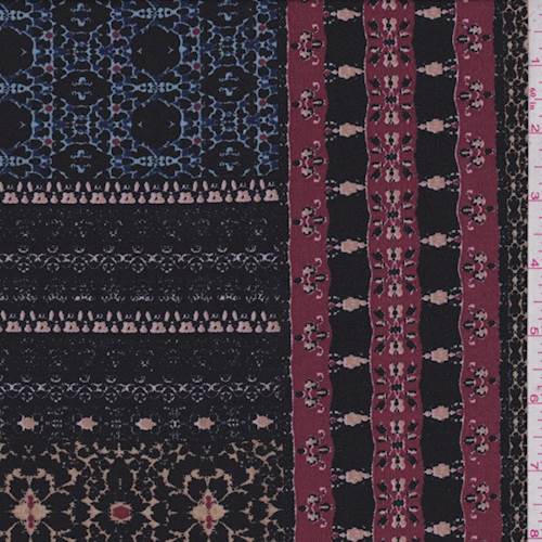 2 1/2 YD PC-Black Multi Moroccan Tile ITY Jersey Knit Fabric