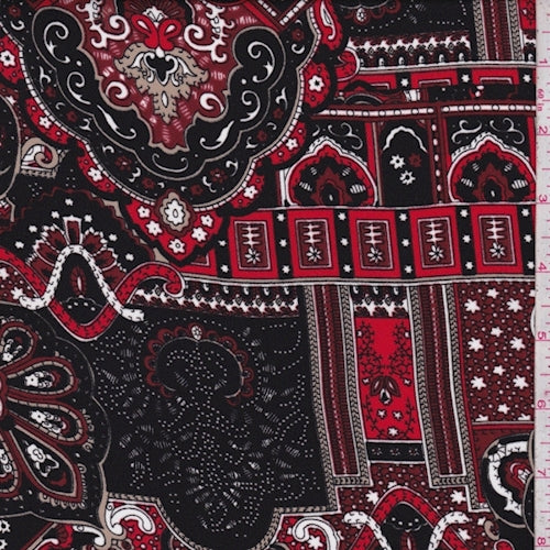 2 YD PC-Black/Maroon/Taupe Moroccan Crepe Georgette Fabric