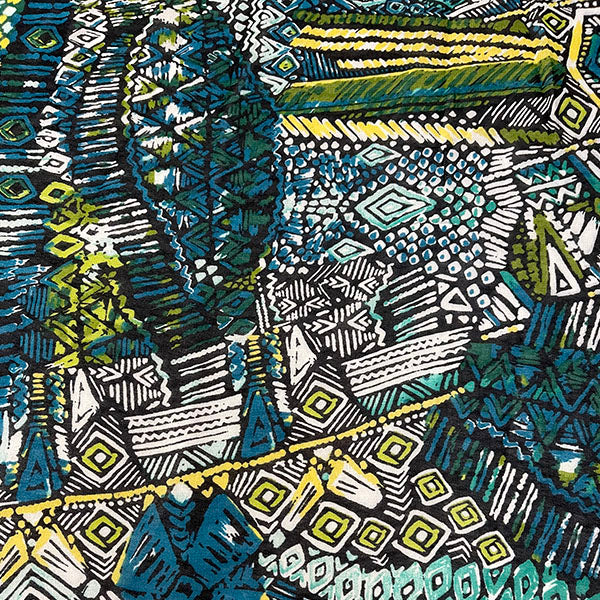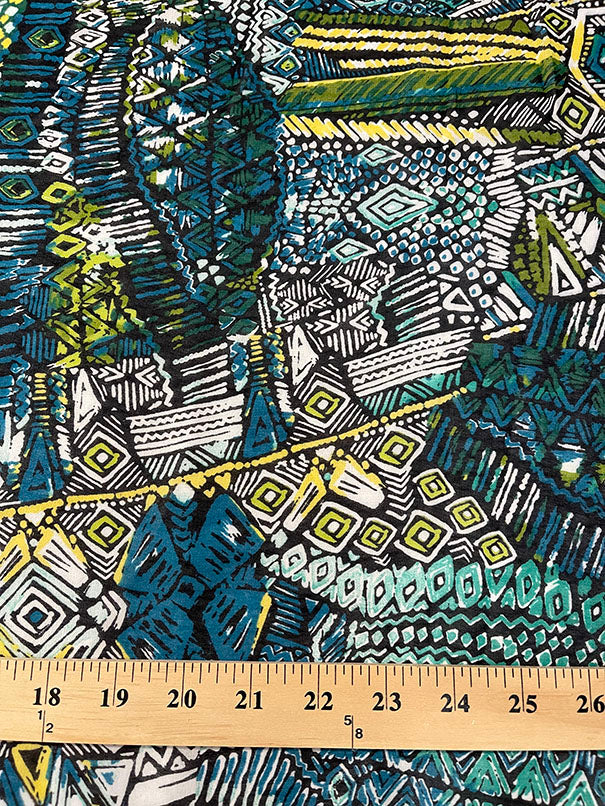 4 3/4 YD PC -Teal, Green, Yellow, White, & Black Aztec Print Sheer Chiffon Fabric