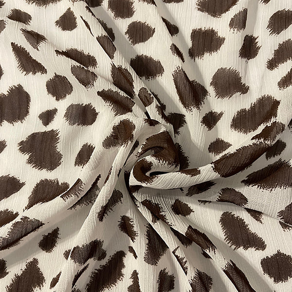 4 YD PC-Brown and White Crinkled Print Chiffon Fabric