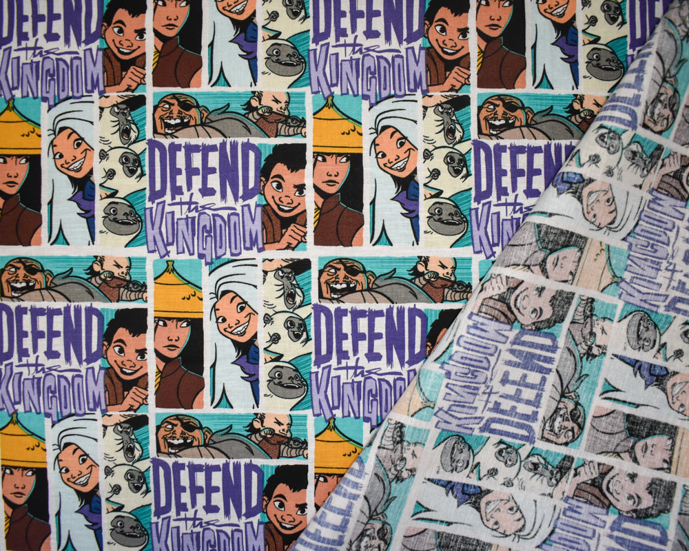-Aqua Teal-Multi Cotton Raya Comic Look Printed Quilting Woven Fabric