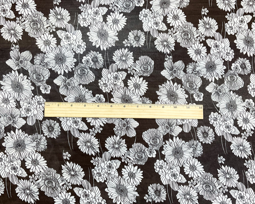 -Black-White Poly Floral Printed Chiffon Woven Fabric
