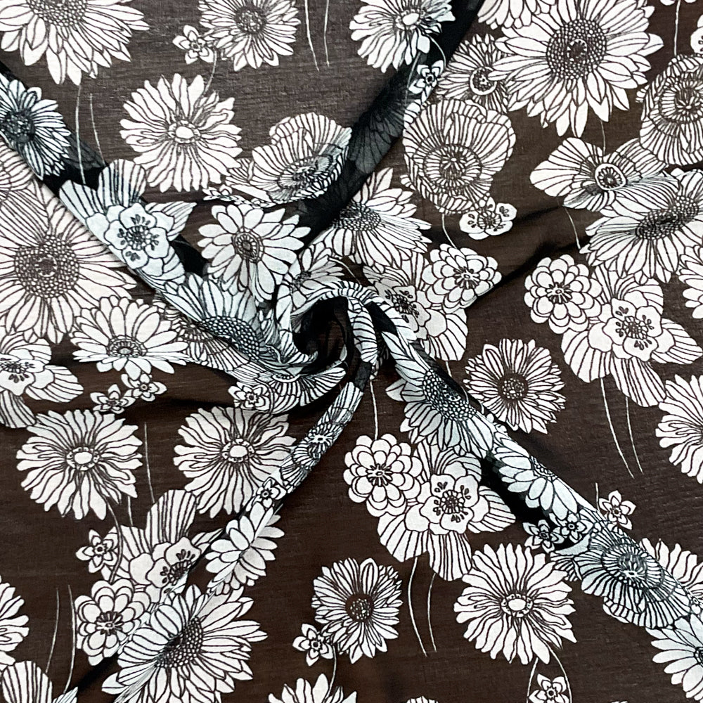 Black-White Poly Floral Printed Chiffon Woven Fabric