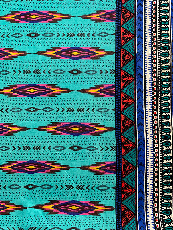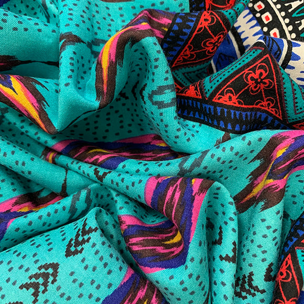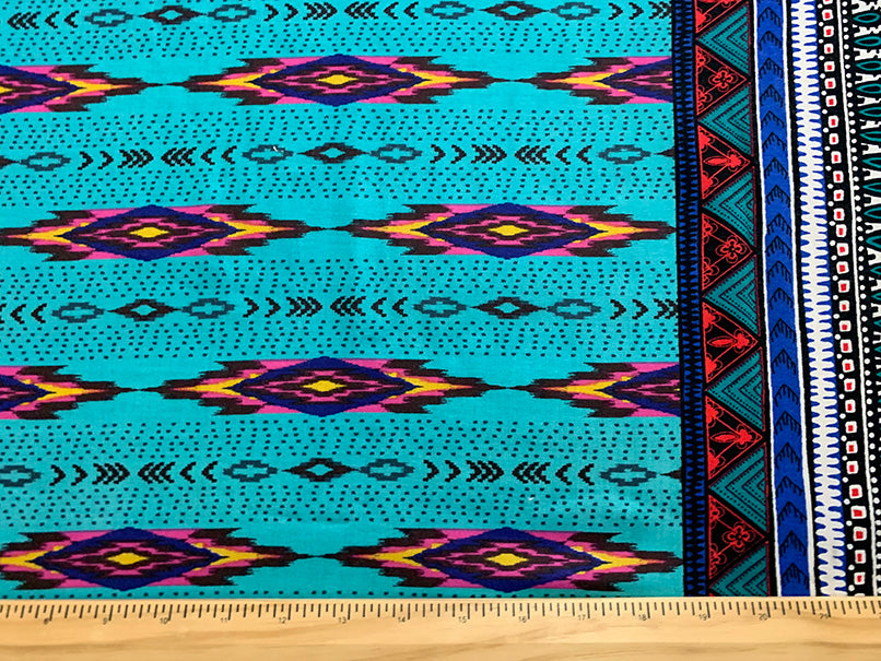 Blue and Pink Multi Stripe Print Rayon Challis Fabric