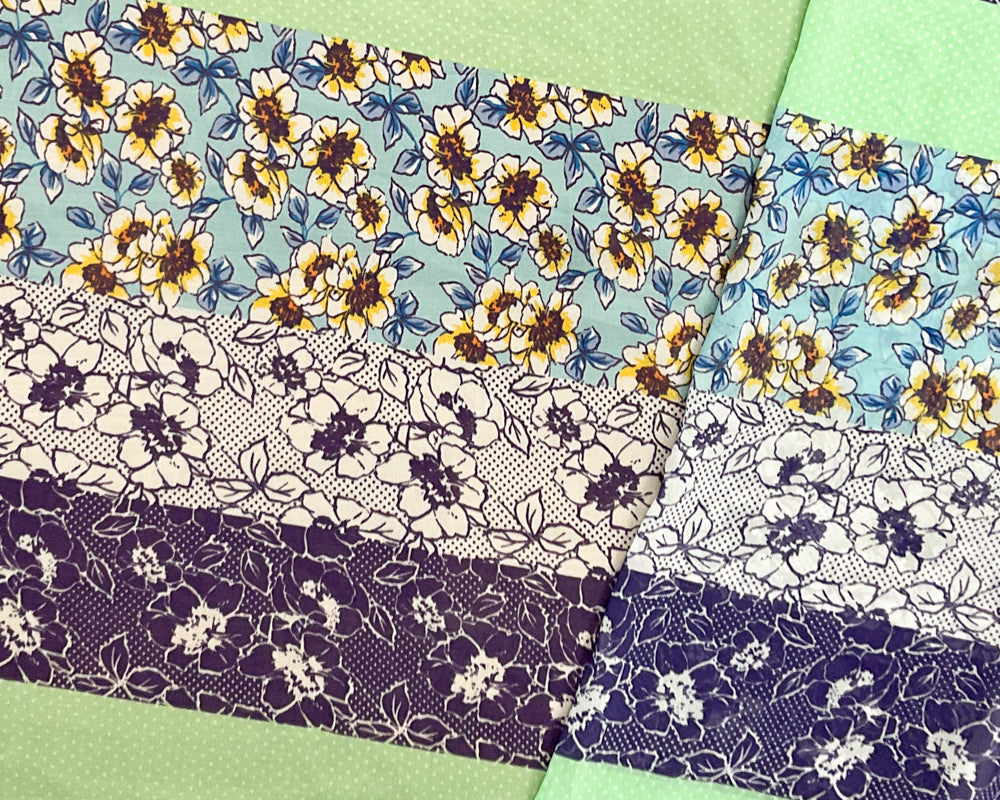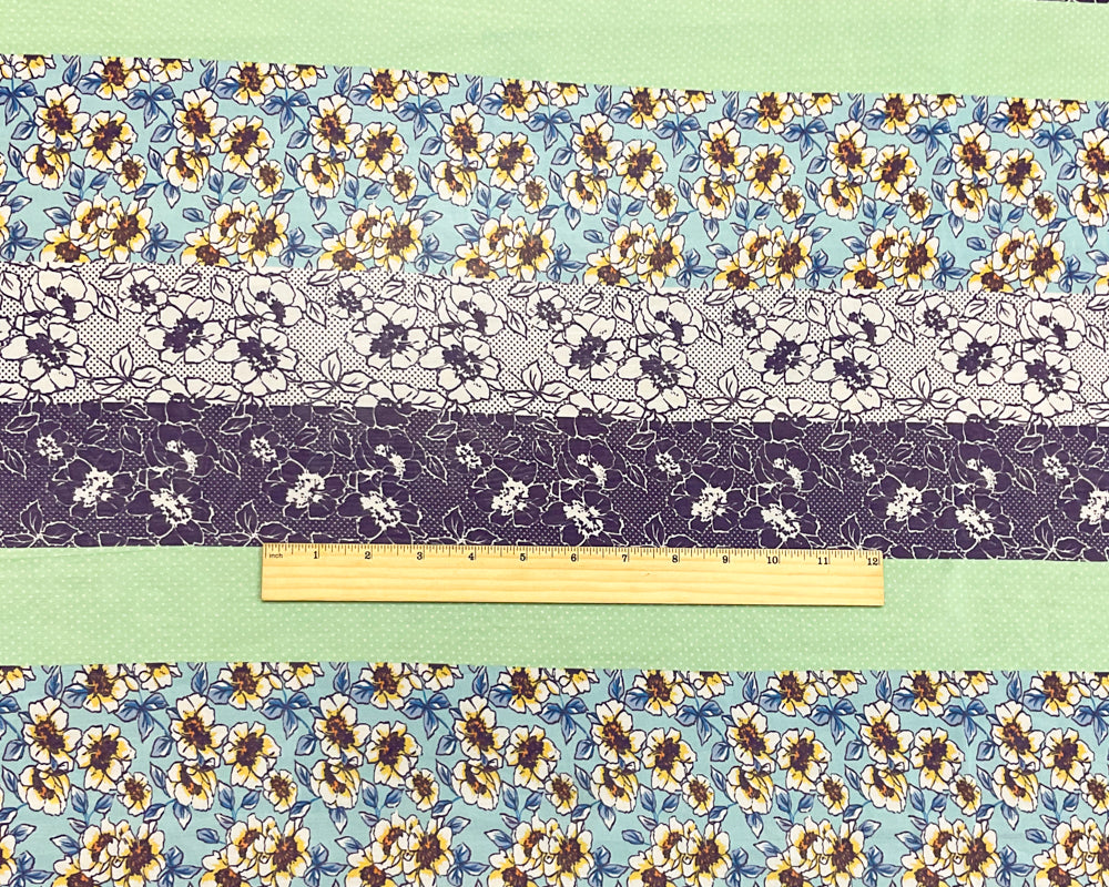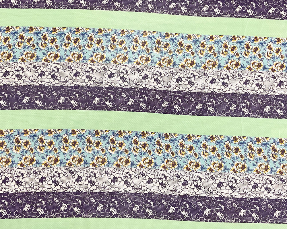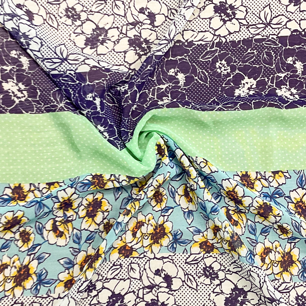 Blue-Green-Multi Poly Stripe Floral Printed Chiffon Woven Fabric