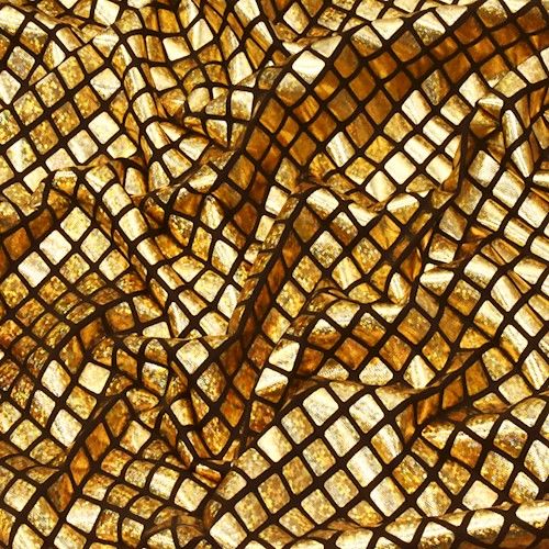 Gold/Black Grid Foil Printed Stretch Activewear Knit Fabric