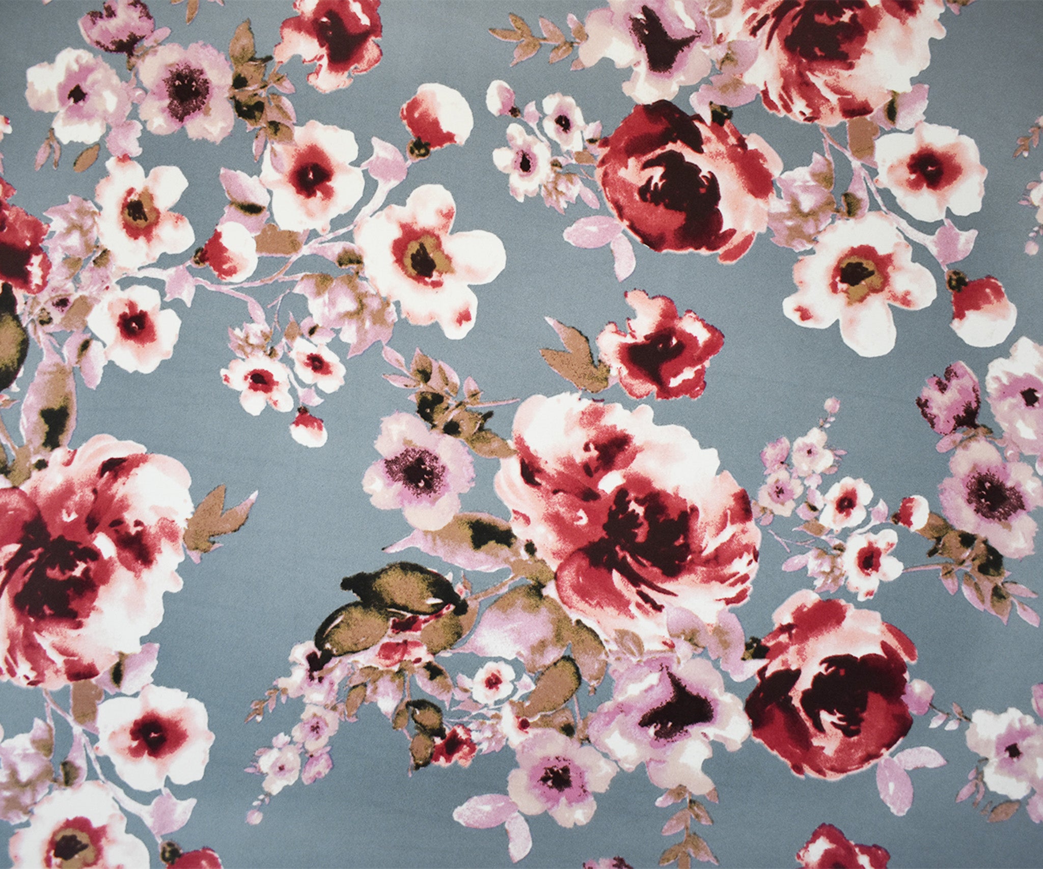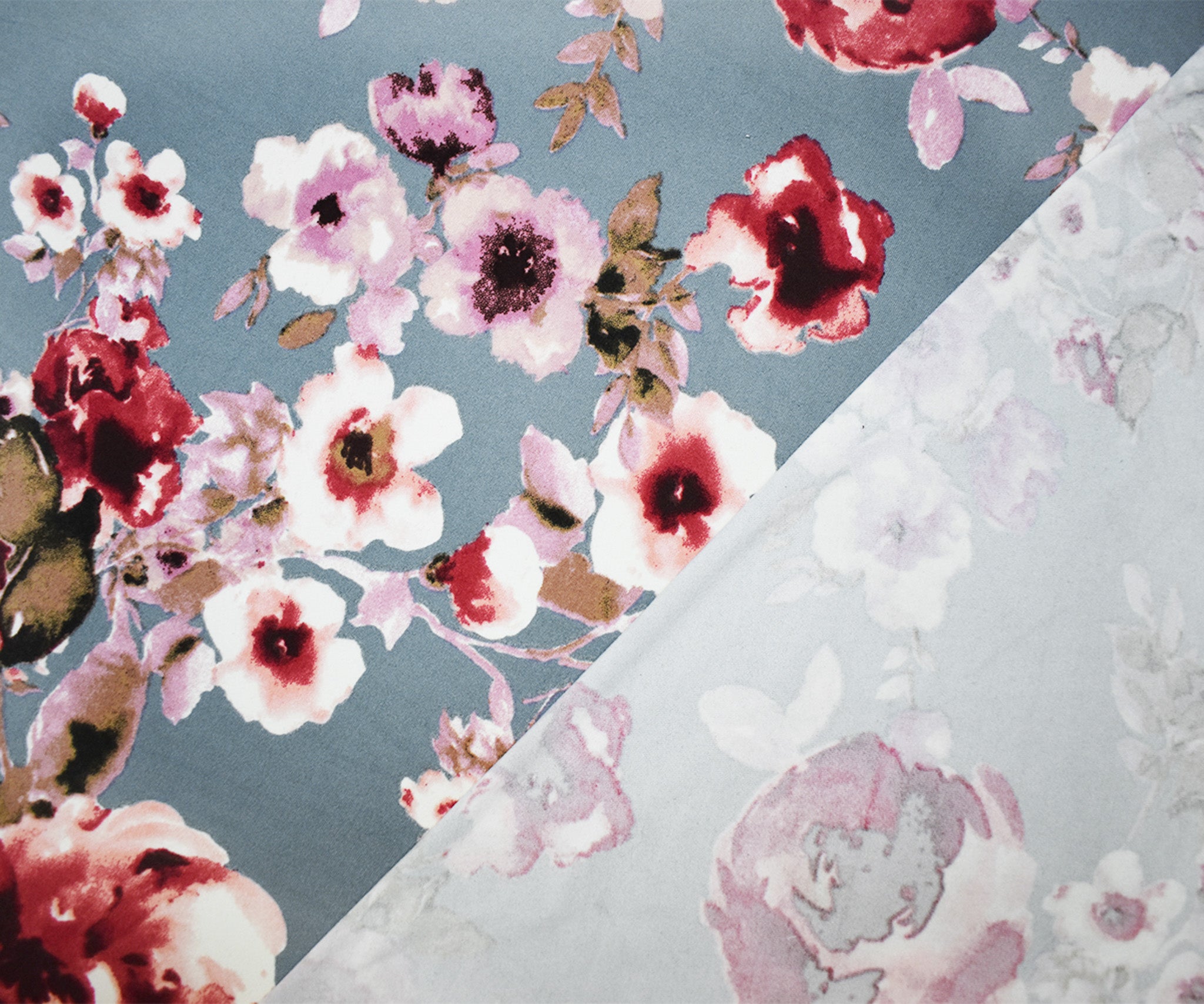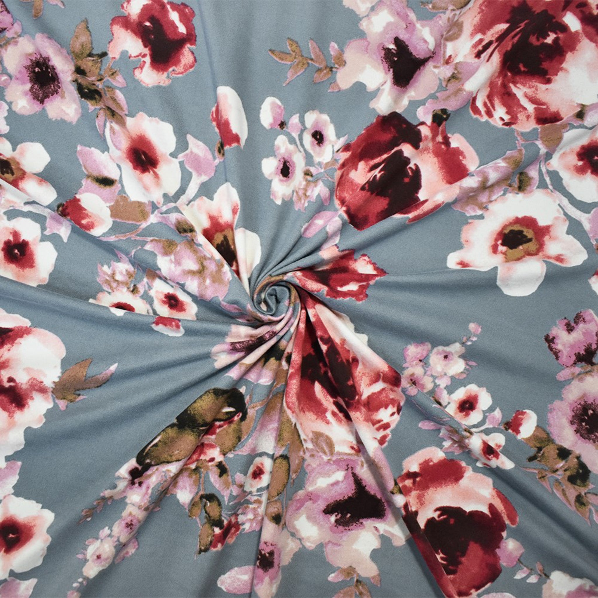 Gray-Multi Floral Printed Double Brushed Jersey Knit Fabric