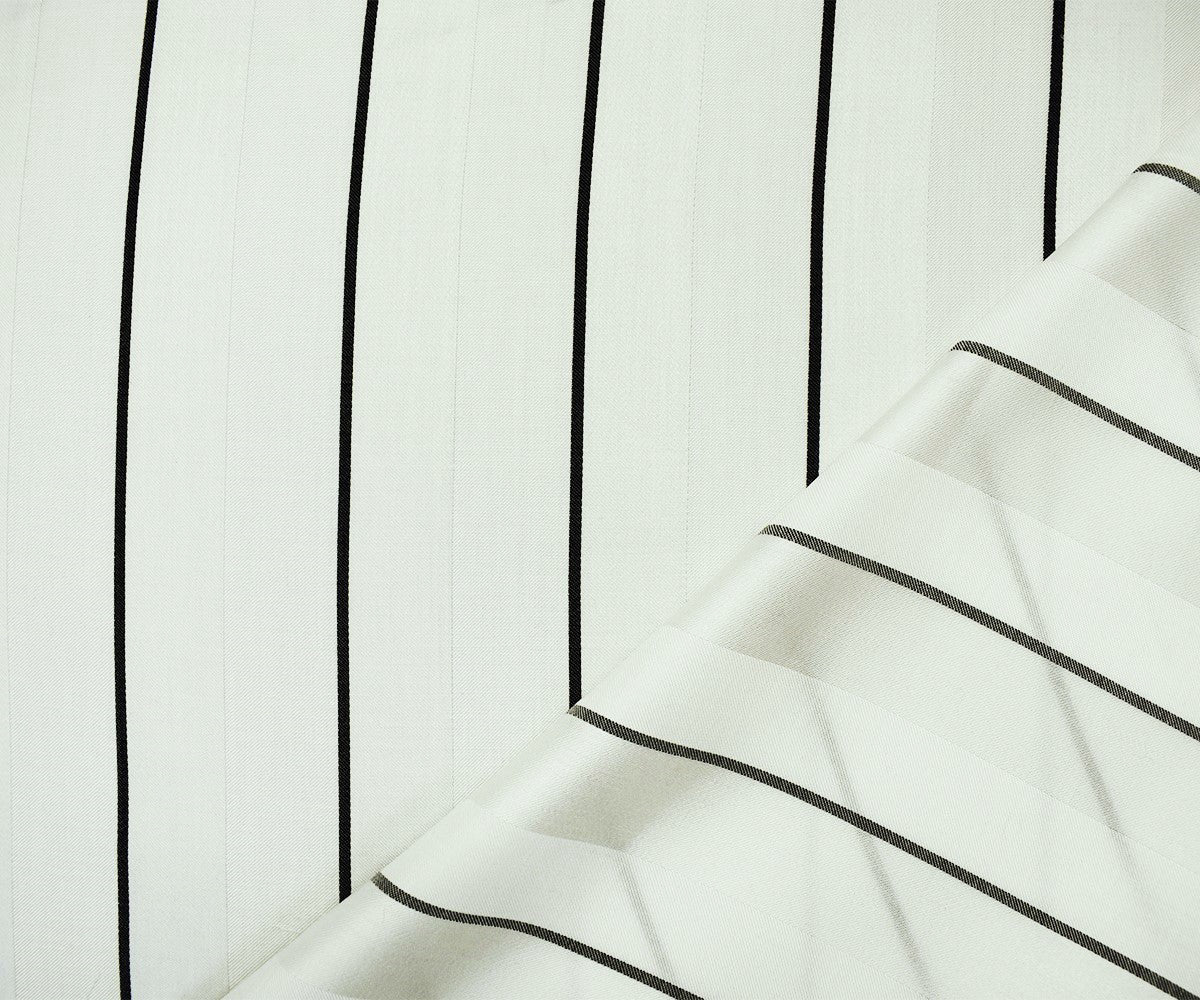 Ivory-Black Rayon-Cotton Famous Maker Vertical Stripe Woven Suiting Fabric