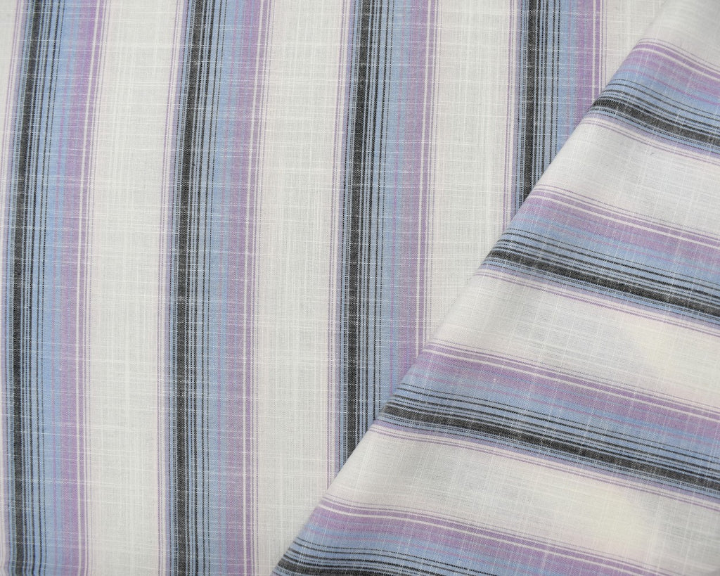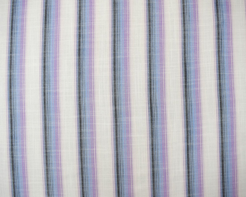 Ivory-Blue-Multi Cotton Famous Maker Vertical Stripe Slub Woven Fabric