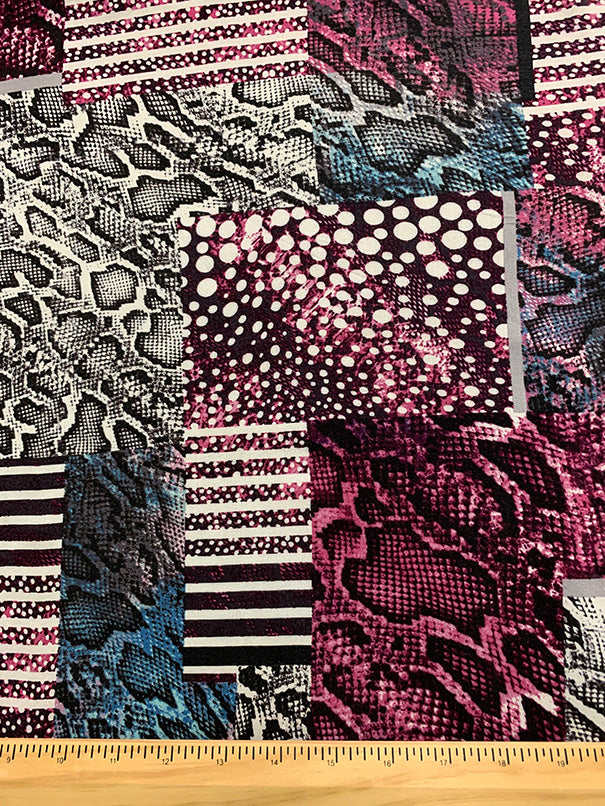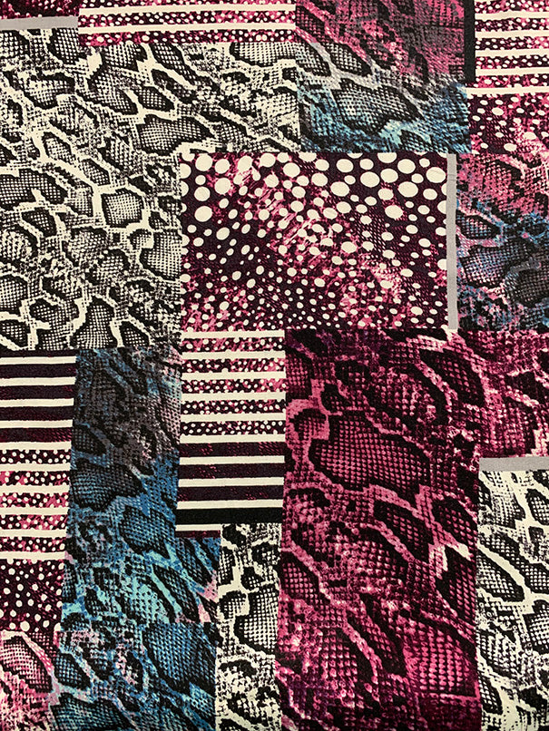 Magenta and Teal Animal Multi Patchwork Print Challis Fabric
