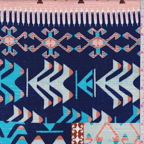 Navy/Rust Multi Tribal Patchwork Rayon Crinkle Fabric