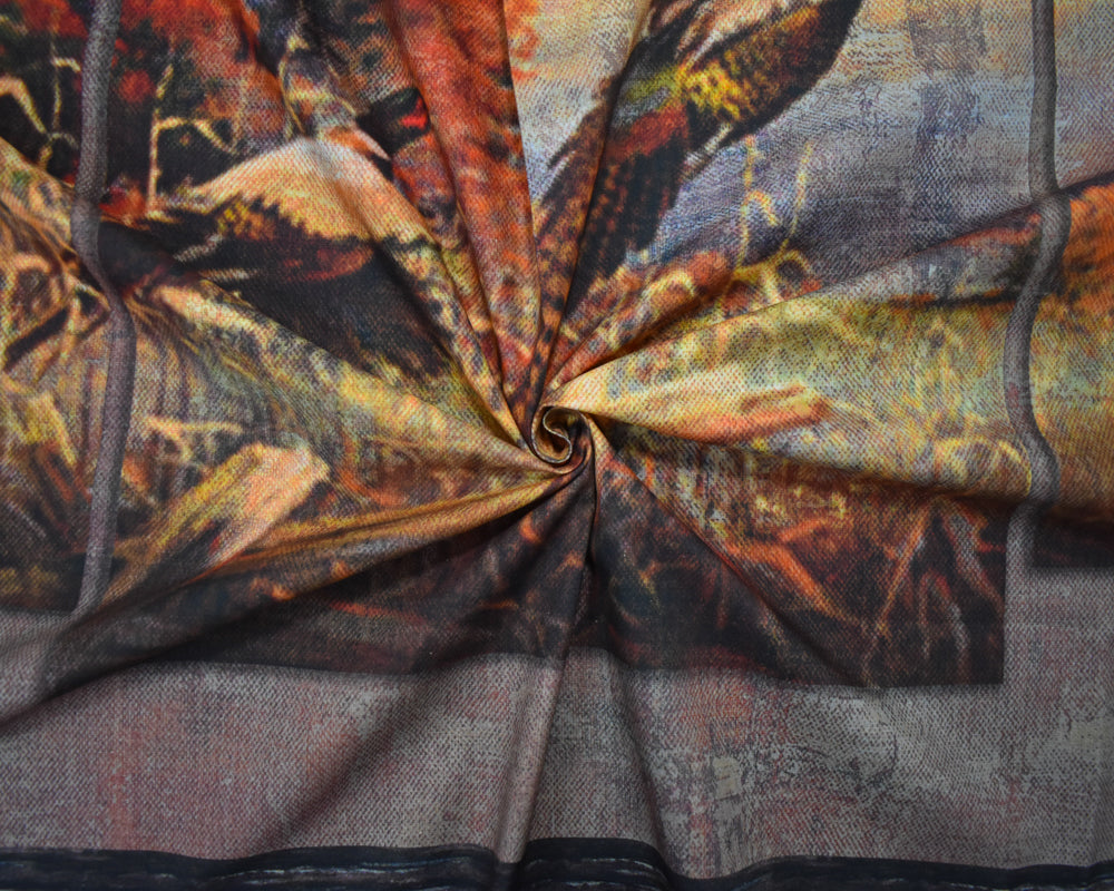 -Orange-Brown-Multi Cotton Peasant Printed Wall Hanging Panel Woven Fabric. Please note that this is a Panel fabric.