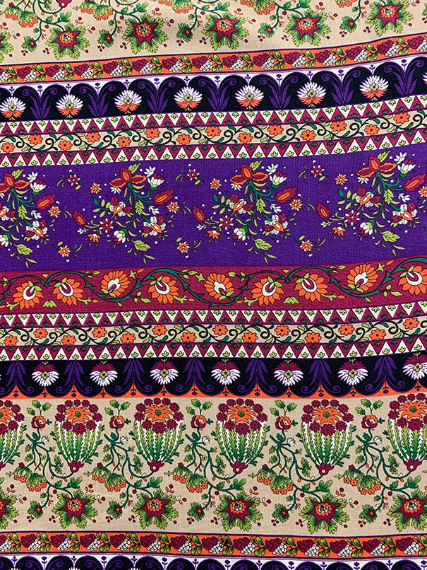 Purple Multi Floral Stripe Print Rayon Challis Fabric