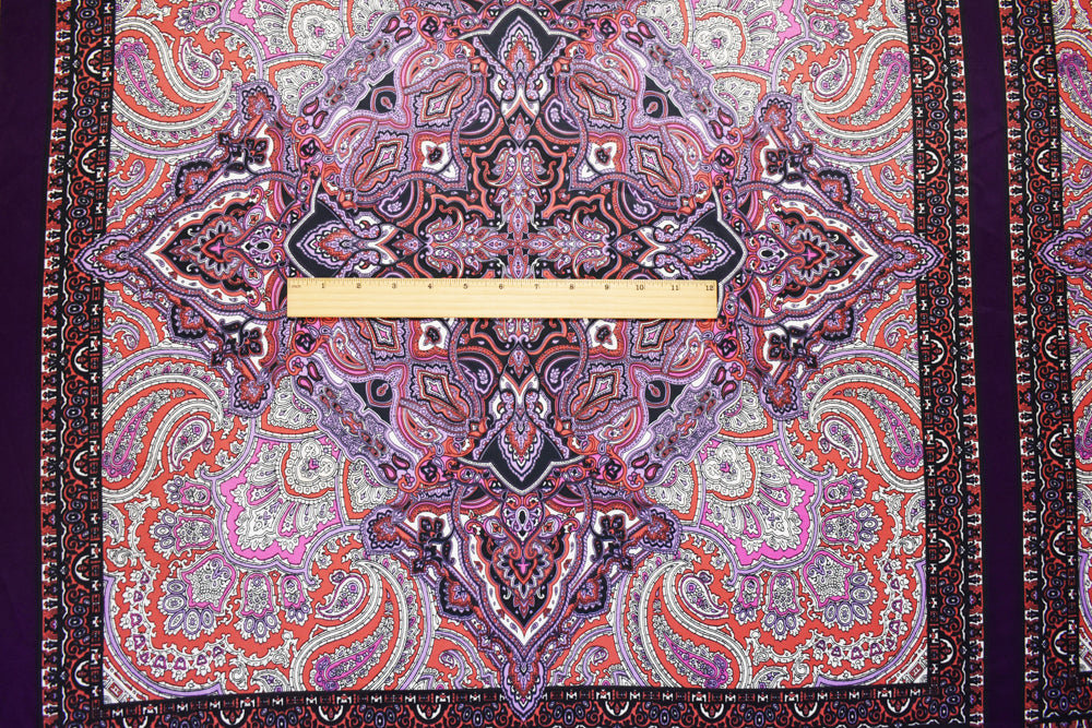 Purple-Orange-Multi Poly Paisley Bandana PANEL Printed Charmeuse Woven Fabric
