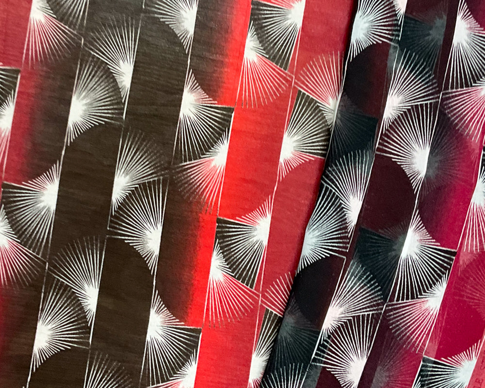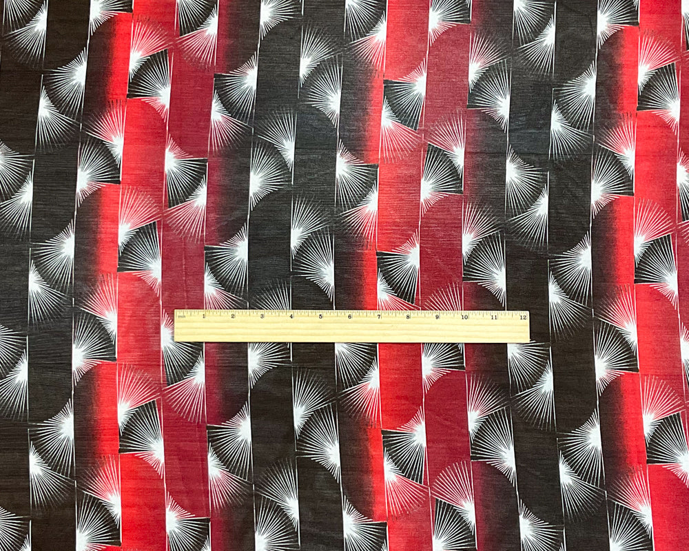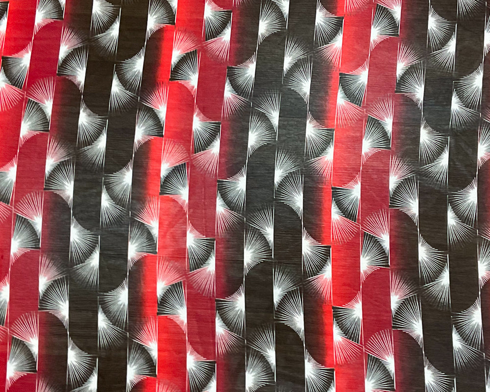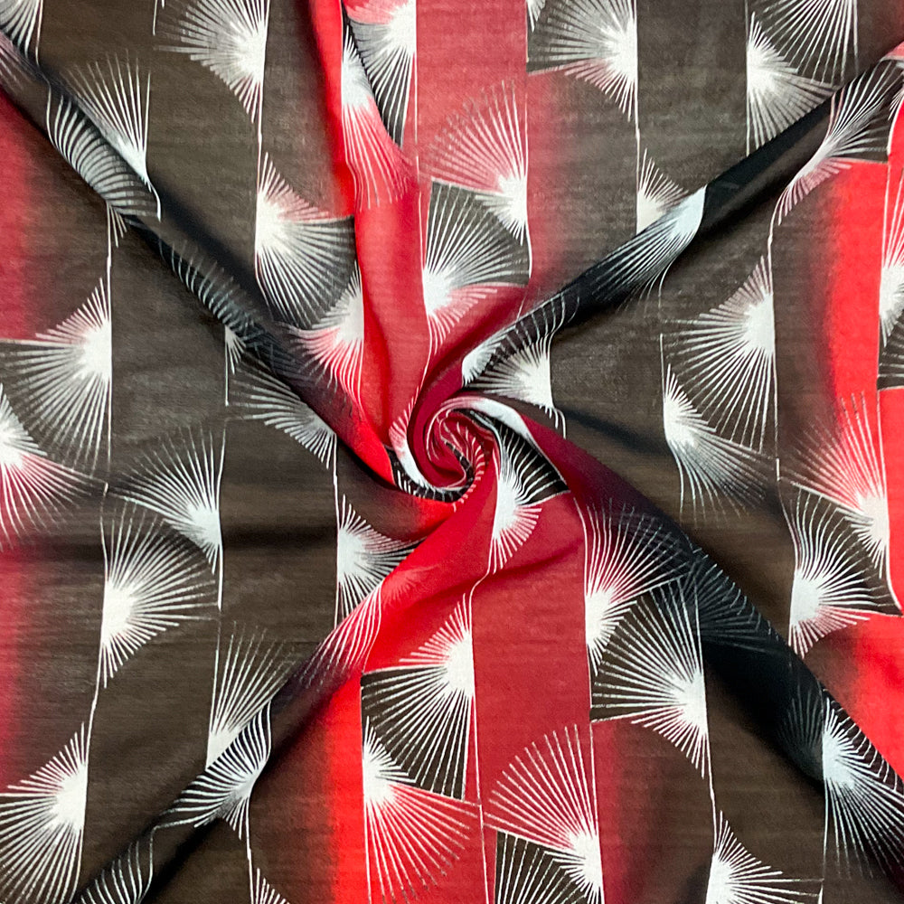 Red-Black-White Poly Abstract Printed Chiffon Woven Fabric