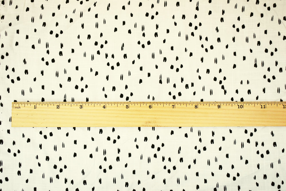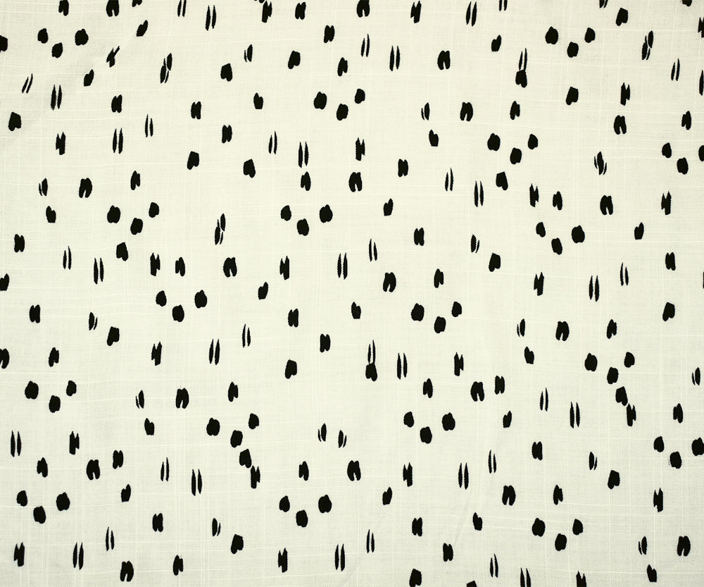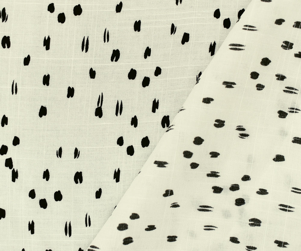 White-Black Rayon Abstract Spots Semi-Sheer Printed Slub Woven Fabric