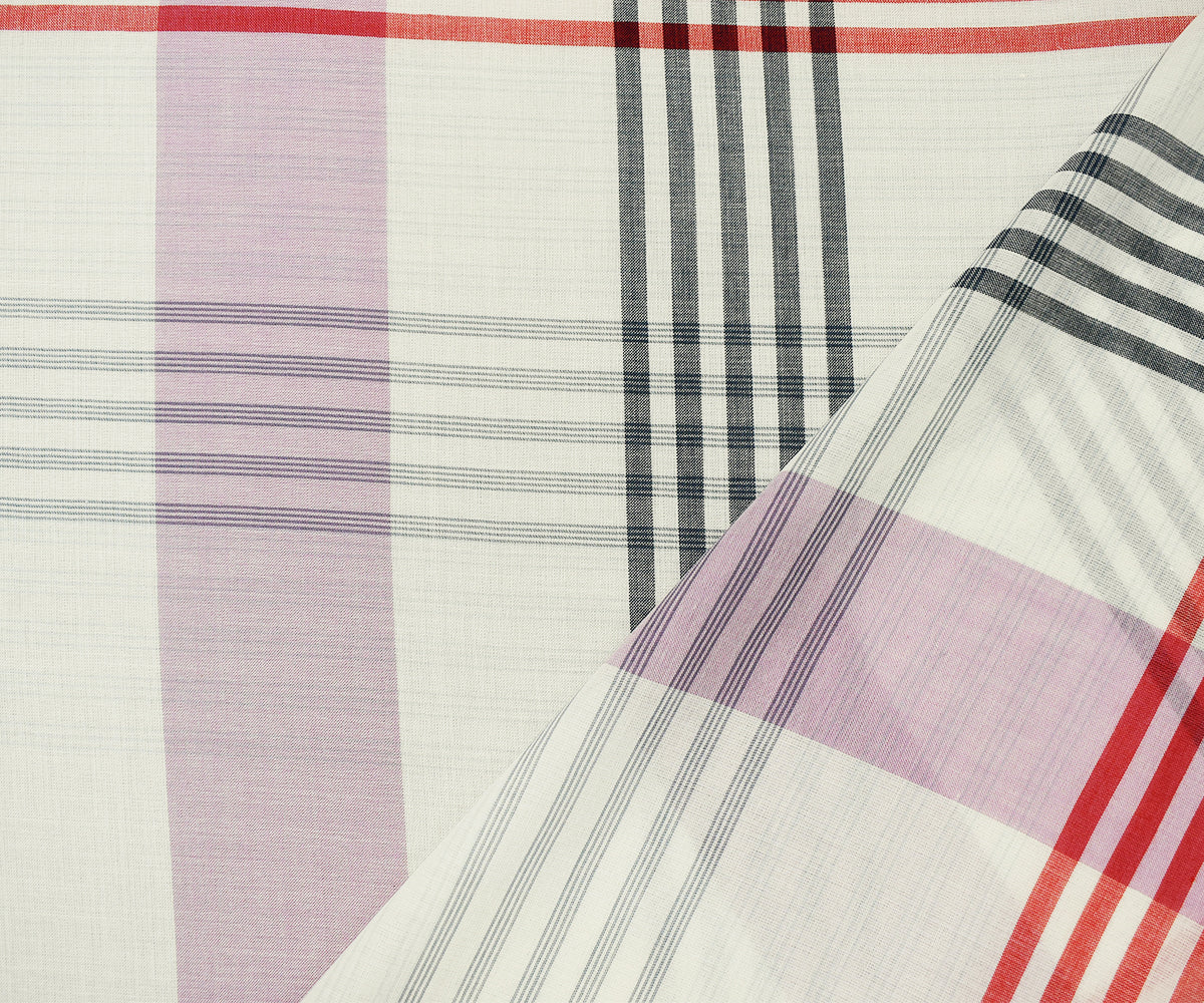White-Red-Navy Cotton Famous Maker Plaid Gauze Woven Fabric