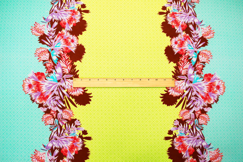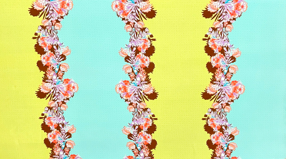 Yellow-Multi Poly Floral Diamond Border Printed Pebble Crepe Woven Fabric