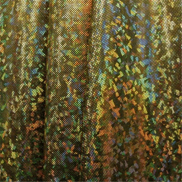 Metallic Gold Shattered Glass Hologram Print on Black Spandex Fabric 4 Way Stretch Suitable for Dancewear, Apparel, & Costumes 80% Nylon 20% Spandex 58" Wide