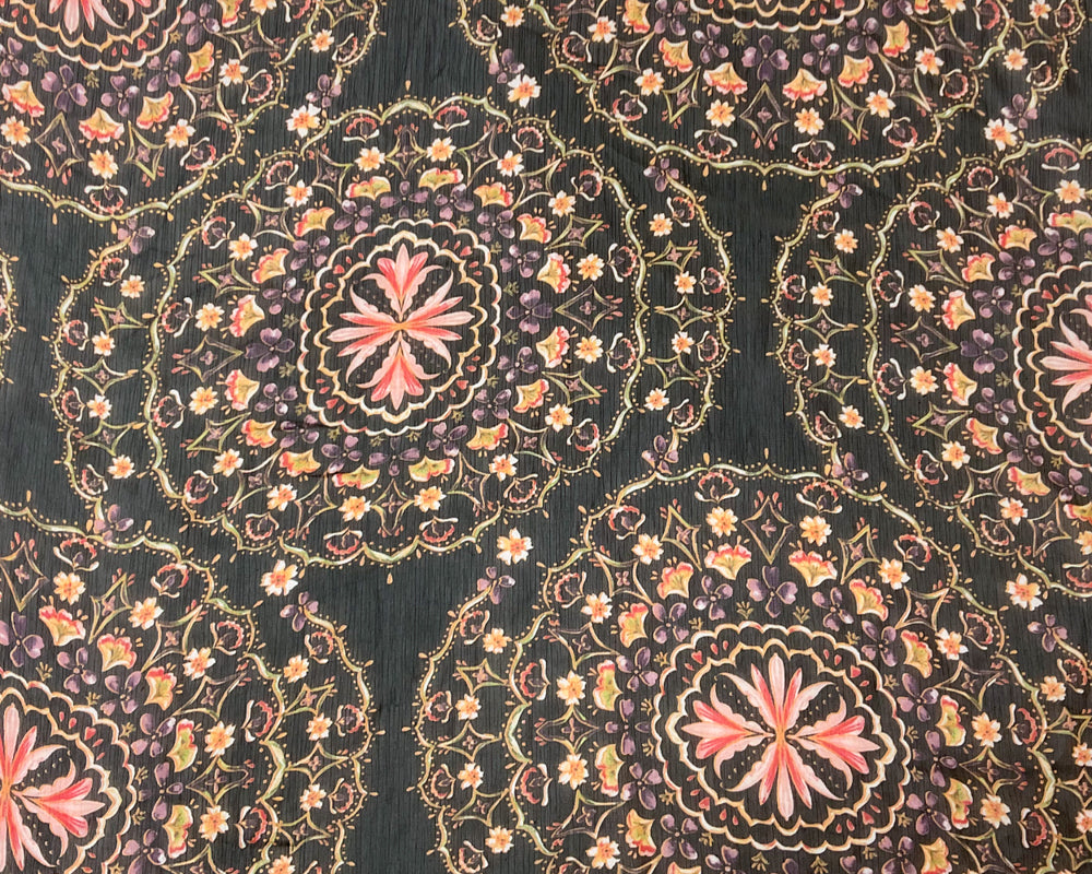 Black-Multi Poly Floral Printed Yoryu Chiffon Woven Fabric