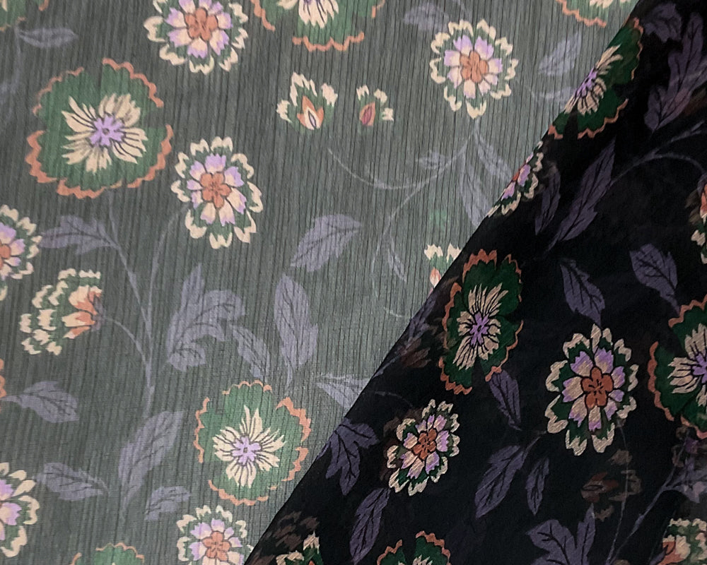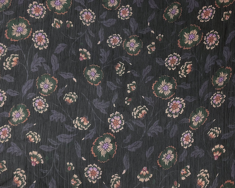 Black-Purple-Multi Poly Floral Printed Yoryu Chiffon Woven Fabric