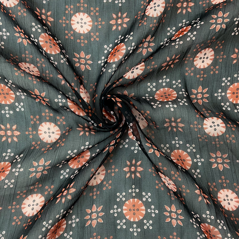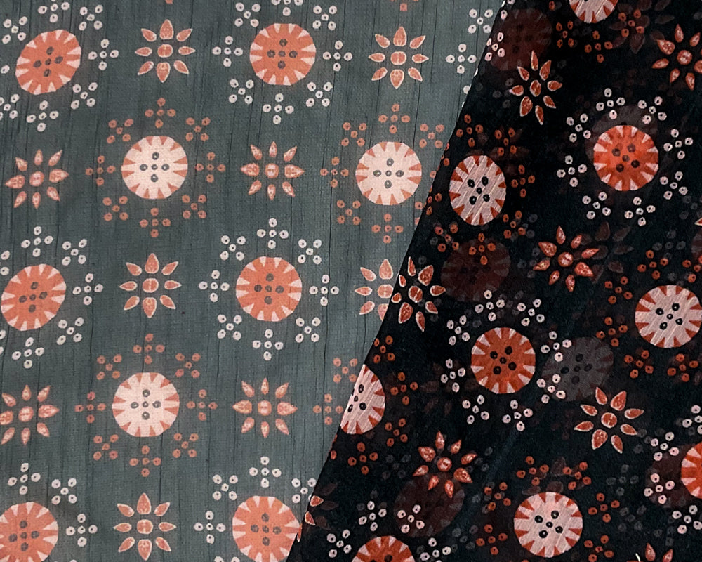 Black-Red-Pink Poly Floral Printed Yoryu Chiffon Woven Fabric