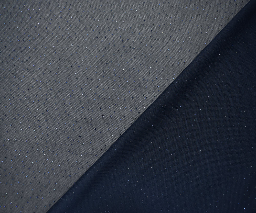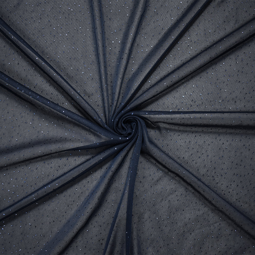 Blue Polyester Metallic Stretch Spandex Sparkle Dot Mesh Knit Fabric
