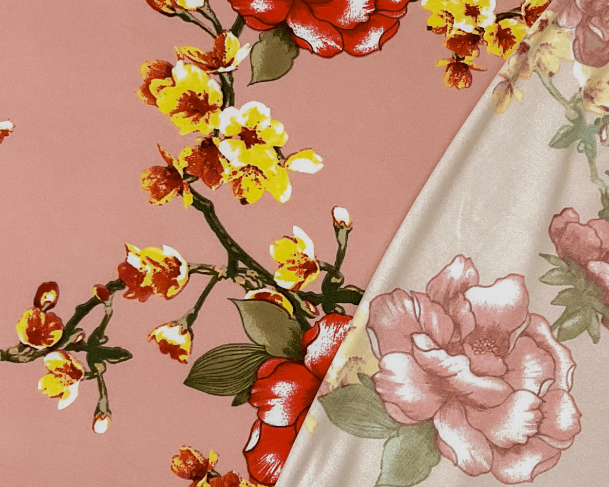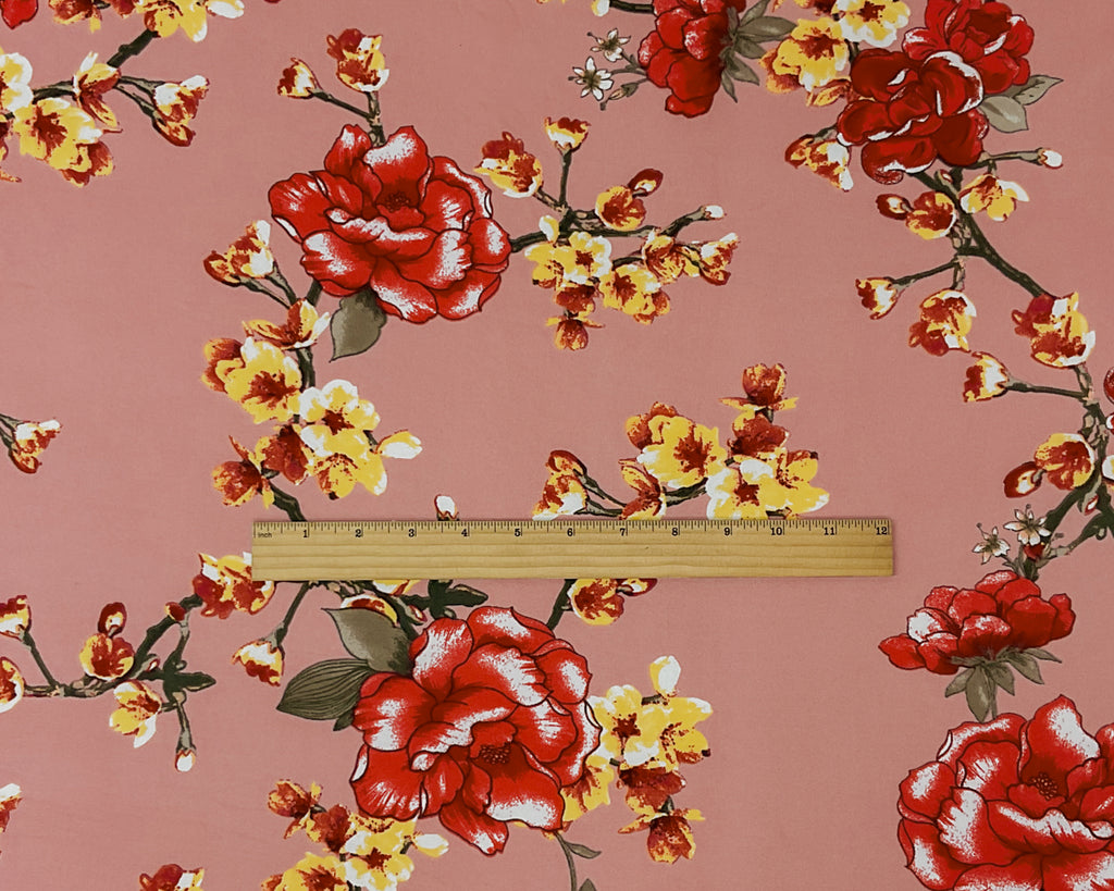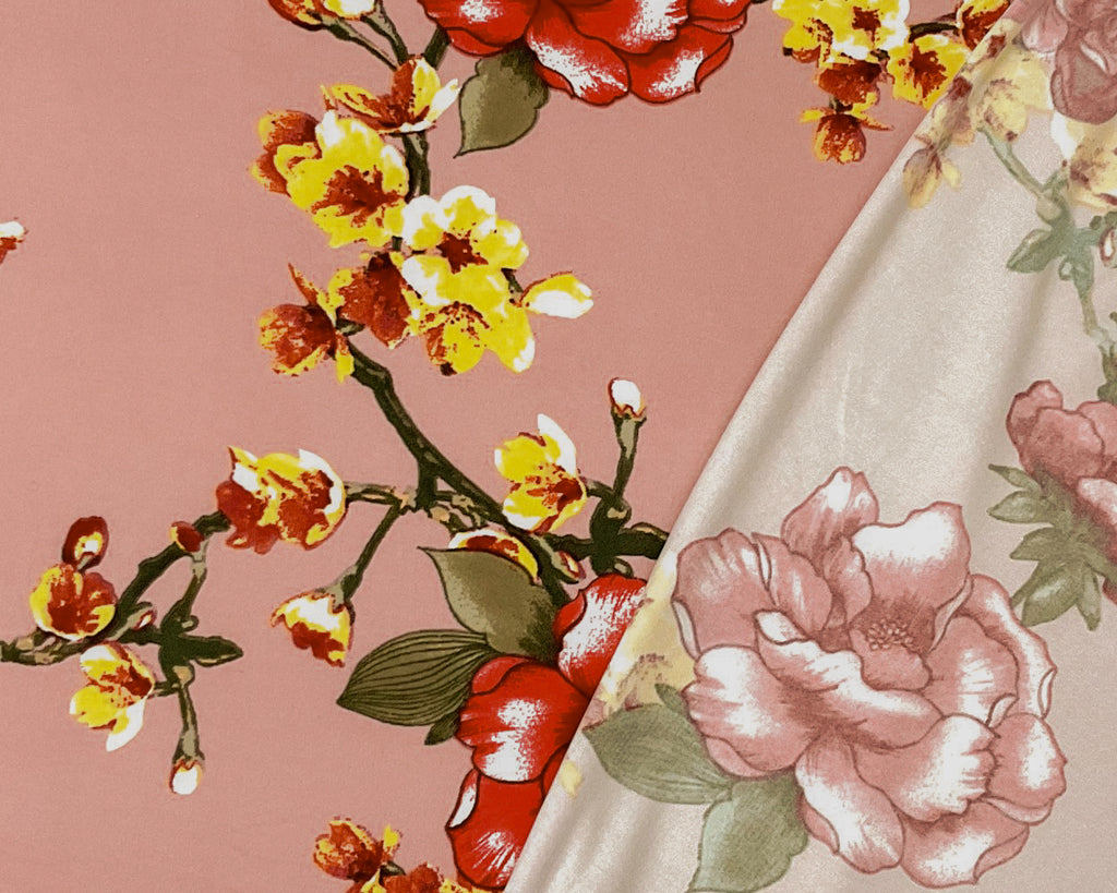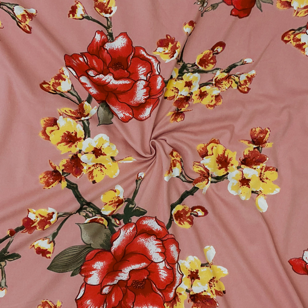 -Pink-Multi Poly Spandex Stretch Floral Print Double Brush Jersey Knit Fabric