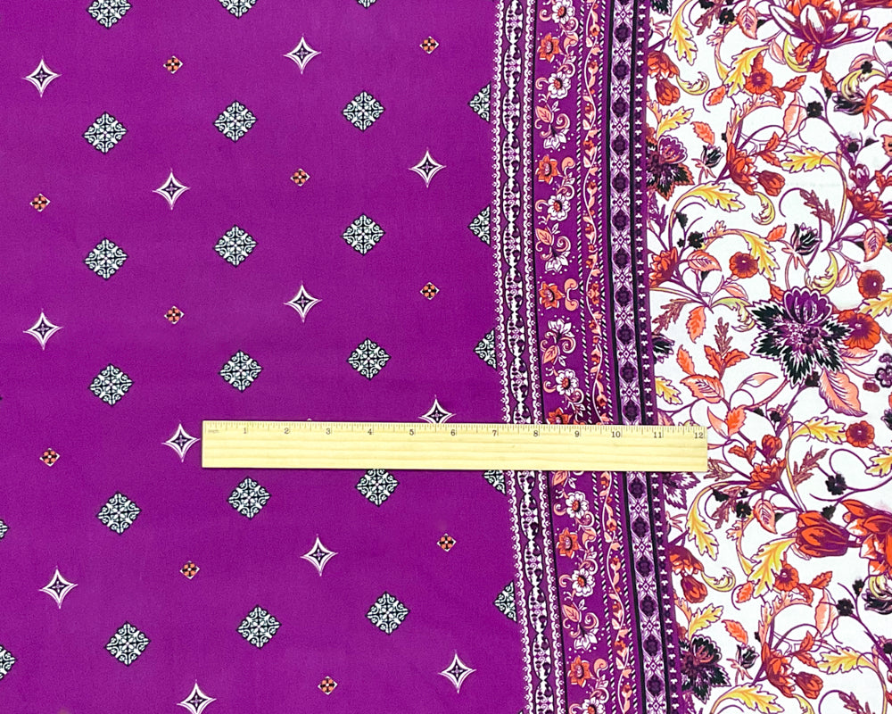 Purple-Multi Poly Border Print Momie Georgette Woven Fabric