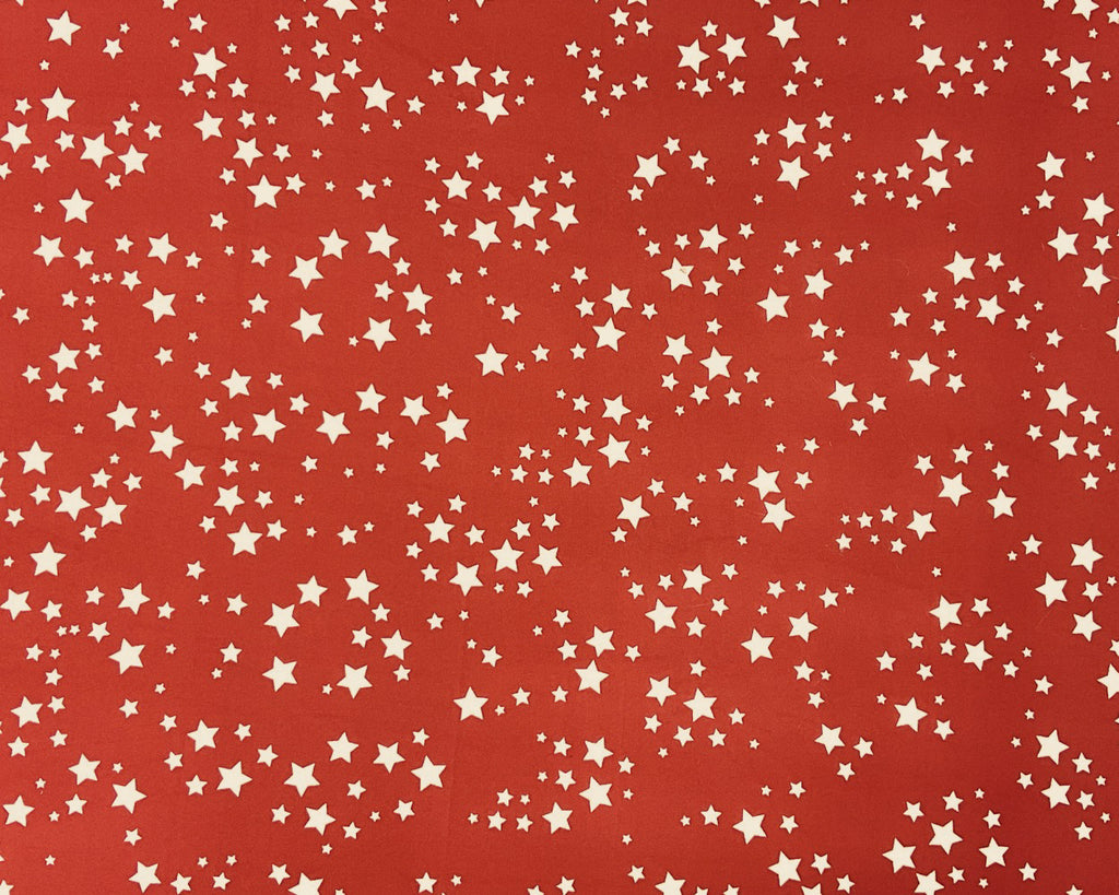 Red-White Poly Spandex Stretch Stars Print DB Jersey Knit Fabric