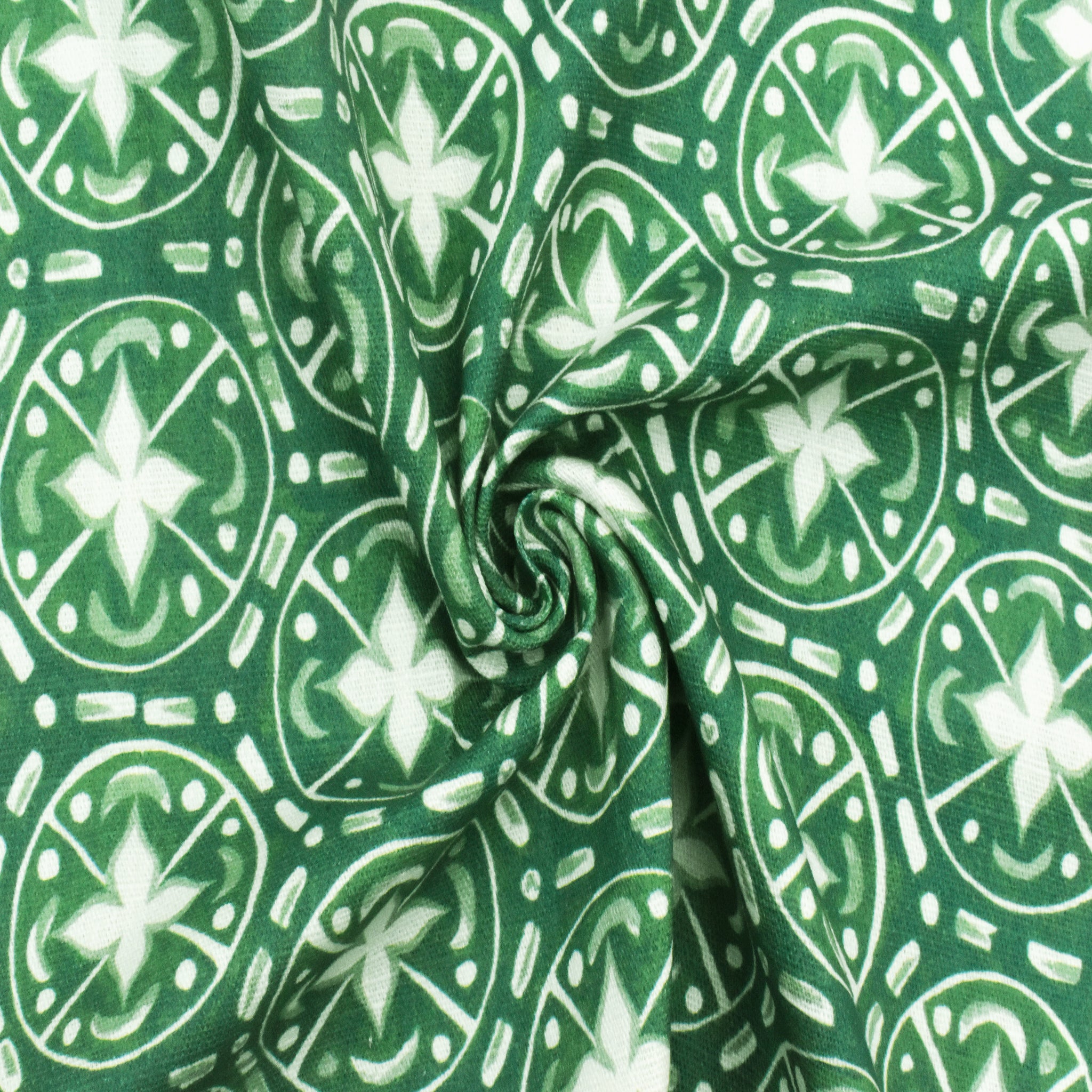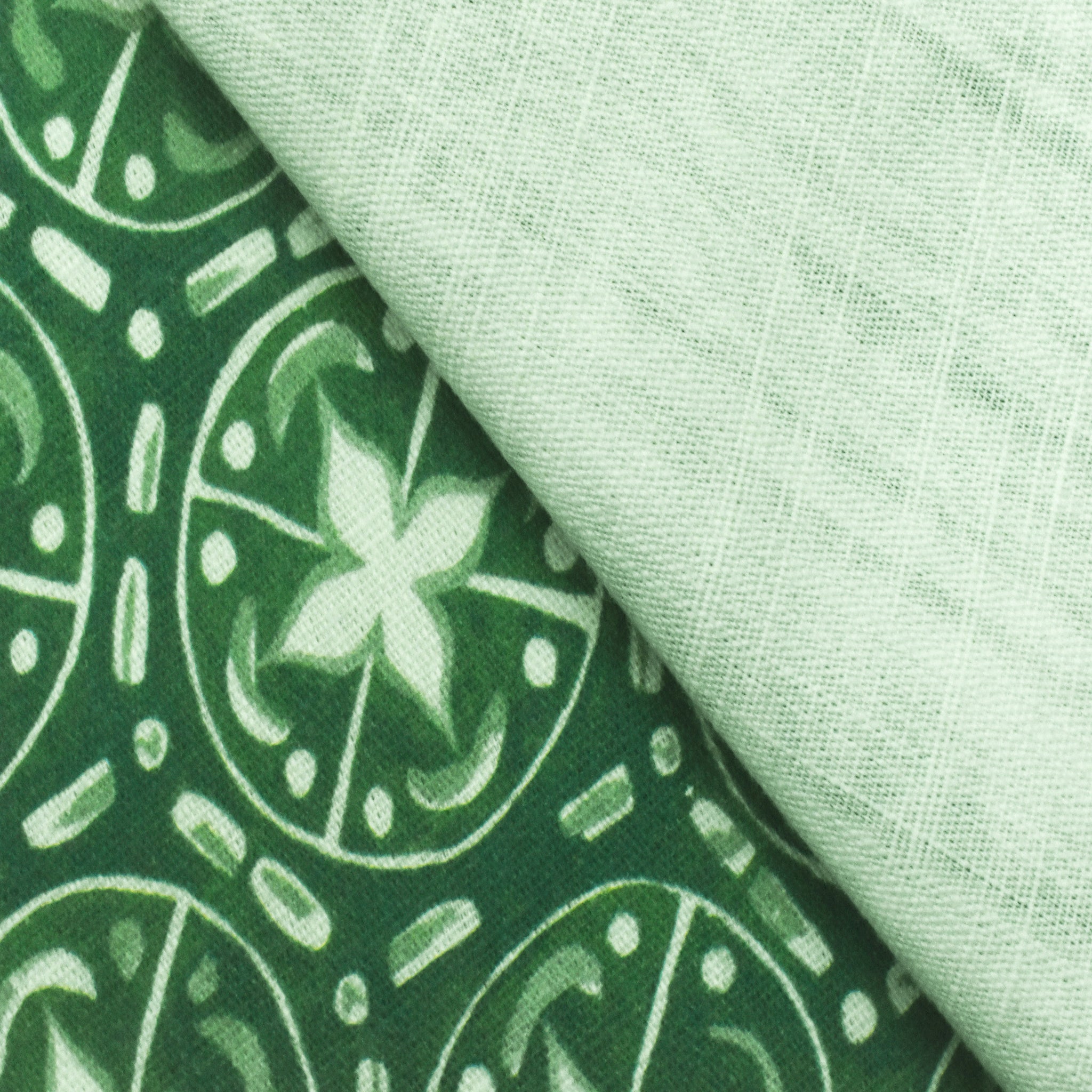 Grass Green-Ivory Abstract Tile Printed Slub Home Decorating Fabric